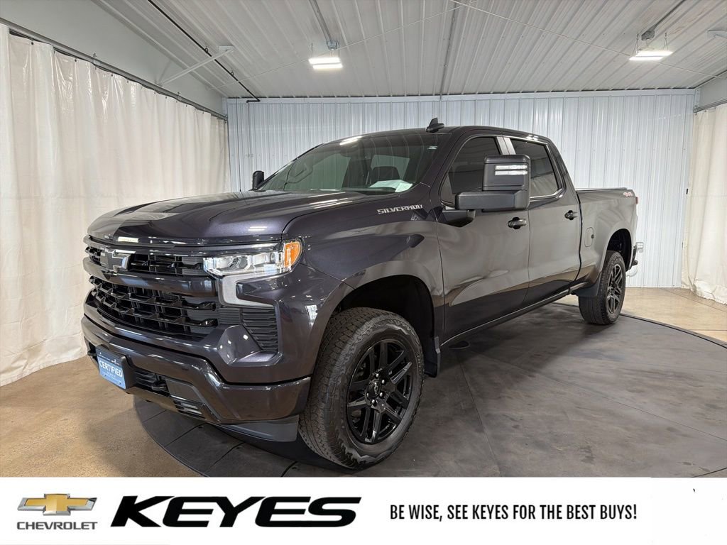 *CARFAX 1 owner*, *Clean CARFAX Vehicle History Report*, Inspected by Certified Technicians, GM Certified - 12/12 warranty & 100K powertrain warranty, Fresh oil change, Fully detailed, Bought New at Keyes, Service Records Available, Clean Local Trade In, 10-Speed Automatic, 4WD, Jet Black w/Cloth Seat Trim, 10-Way Power Driver Seat w/Lumbar, 12.3 Multicolor Reconfigurable Digital Display, 120-Volt Instrument Panel Power Outlet, 2 USB Data Ports, 6-Speaker Audio System, All-Star Edition, Auto-Locking Rear Differential, Bluetooth® For Phone, Color-Keyed Carpeting Floor Covering, Compass, Convenience Package, Convenience Package II, Deep-Tinted Glass, Dual Rear USB Ports (Charge Only), Dual-Zone Automatic Climate Control, Electric Rear-Window Defogger, Electrical Steering Column Lock, Electronic Cruise Control, Electronic Transmission Range Selector Shifter, Enhanced Cooling Radiator, EZ Lift Power Lock & Release Tailgate, Floor Mounted Center Console, Front Bucket Seats, Front fog lights, Front Frame-Mounted Black Recovery Hooks, Front LED Fog Lamps, Front Rubberized Vinyl Floor Mats, HD Rear Vision Camera, Heated Driver & Front Outboard Passenger Seats, Heated Power-Adjustable Outside Mirrors, Heated Steering Wheel, Heavier Duty Rear Springs, High Capacity Suspension Package, High Gloss Black Mirror Caps, Hitch Guidance w/Hitch View, Increased RGAWR, Inside Rear-View Mirror w/Tilt, Integrated Trailer Brake Controller, Keyless Open & Start, Leather Wrapped Steering Wheel, LED Cargo Area Lighting, Manual Tilt/Telescoping Steering Column, Max Trailering Package, OnStar & Chevrolet Connected Services Capable, Power Front Windows w/Driver Express Up/Down, Power Front Windows w/Passenger Express Down, Power Rear Windows w/Express Down, Power Sliding Rear Window w/Rear Defogger, Power steering, Power Sunroof, Preferred Equipment Group 1SP, Premium Bose 7-Speaker Sound System, Rear 60/40 Folding Bench Seat (Folds Up), Rear Rubberized-Vinyl Floor Mats, Remote Vehicle Starter System, SiriusXM w/360L, Speed control, Standard Suspension Package, Standard Tailgate, Steering Wheel Audio Controls, Steering wheel mounted audio controls, Theft Deterrent System (Unauthorized Entry), Trailering App, Trailering Package, Universal Home Remote, Wireless Charging, Wireless Phone Projection. Certified. Dark Ash Metallic 2022 Chevrolet Silverado 1500 RST 4D Crew Cab 4WD 10-Speed Automatic EcoTec3 5.3L V8