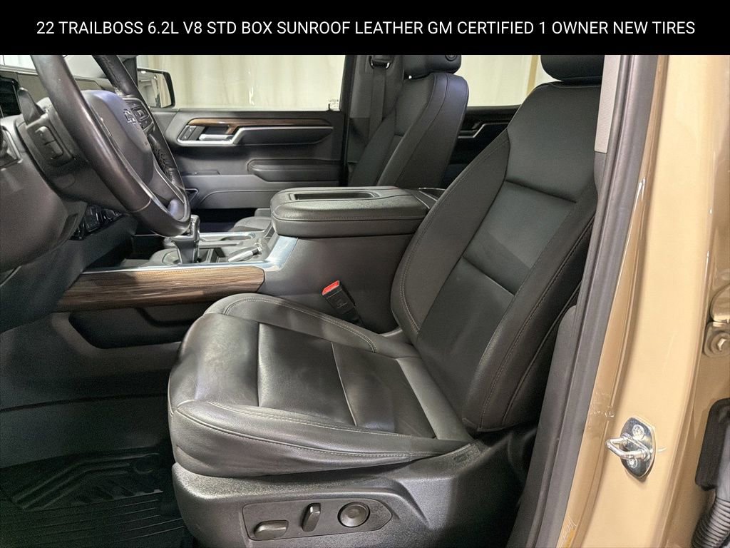 *CARFAX 1 owner*, *Clean CARFAX Vehicle History Report*, 4 New Tires, Inspected by Certified Technicians, GM Certified - 12/12 warranty & 100K powertrain warranty, Fresh oil change, Fully detailed, Bought New at Keyes, Service Records Available, Clean Local Trade In, 10-Speed Automatic, 4WD, Jet Black w/Leather-Appointed Front Seat Trim, 10-Way Power Driver Seat w/Lumbar, 12.3 Multicolor Reconfigurable Digital Display, 120-Volt Instrument Panel Power Outlet, 2 USB Data Ports, 6-Speaker Audio System, All-Weather Floor Liner (LPO) (AAK), Auto-Locking Rear Differential, Black Name Plates (LPO), Bluetooth® For Phone, Color-Keyed Carpeting Floor Covering, Compass, Convenience Package, Convenience Package II, Dark Essentials Package (LPO), Deep-Tinted Glass, Dual Rear USB Ports (Charge Only), Dual-Zone Automatic Climate Control, Electric Rear-Window Defogger, Electrical Steering Column Lock, Electronic Cruise Control, Electronic Transmission Range Selector Shifter, EZ Lift Power Lock & Release Tailgate, Floor Mounted Center Console, Front Bucket Seats, Front fog lights, Front LED Fog Lamps, HD Rear Vision Camera, Heated Driver & Front Outboard Passenger Seats, Heated front seats, Heated Power-Adjustable Outside Mirrors, Heated Steering Wheel, Heavy-Duty Air Filter, High Gloss Black Mirror Caps, Hill Descent Control, Hitch Guidance w/Hitch View, Inside Rear-View Mirror w/Tilt, Integrated Trailer Brake Controller, Keyless Open & Start, Leather Package, Leather Wrapped Steering Wheel, Leather-Appointed Front Seat Trim, LED Cargo Area Lighting, LT Trail Boss Premium Package, Manual Tilt/Telescoping Steering Column, OnStar & Chevrolet Connected Services Capable, Performance Red Recovery Hooks, Power Front Windows w/Driver Express Up/Down, Power Front Windows w/Passenger Express Down, Power Rear Windows w/Express Down, Power Sliding Rear Window w/Rear Defogger, Power Sunroof, Power Tailgate, Power windows, Preferred Equipment Group 2LT, Premium audio system: Chevrolet Infotainment 3 Premium, Premium Bose 7-Speaker Sound System, Protection Package, Rear 60/40 Folding Bench Seat (Folds Up), Remote Vehicle Starter System, Safety Package, SiriusXM w/360L, Speed control, Standard Tailgate, Steering Wheel Audio Controls, Steering wheel mounted audio controls, Suspension Package, Theft Deterrent System (Unauthorized Entry), Trailering App, Trailering Package, Universal Home Remote, Up-Level Rear Seat w/Storage Package, Wireless Charging, Wireless Phone Projection. Certified. Sand Dune Metallic 2022 Chevrolet Silverado 1500 LT Trail Boss 4D Crew Cab 4WD 10-Speed Automatic EcoTec3 6.2L V8