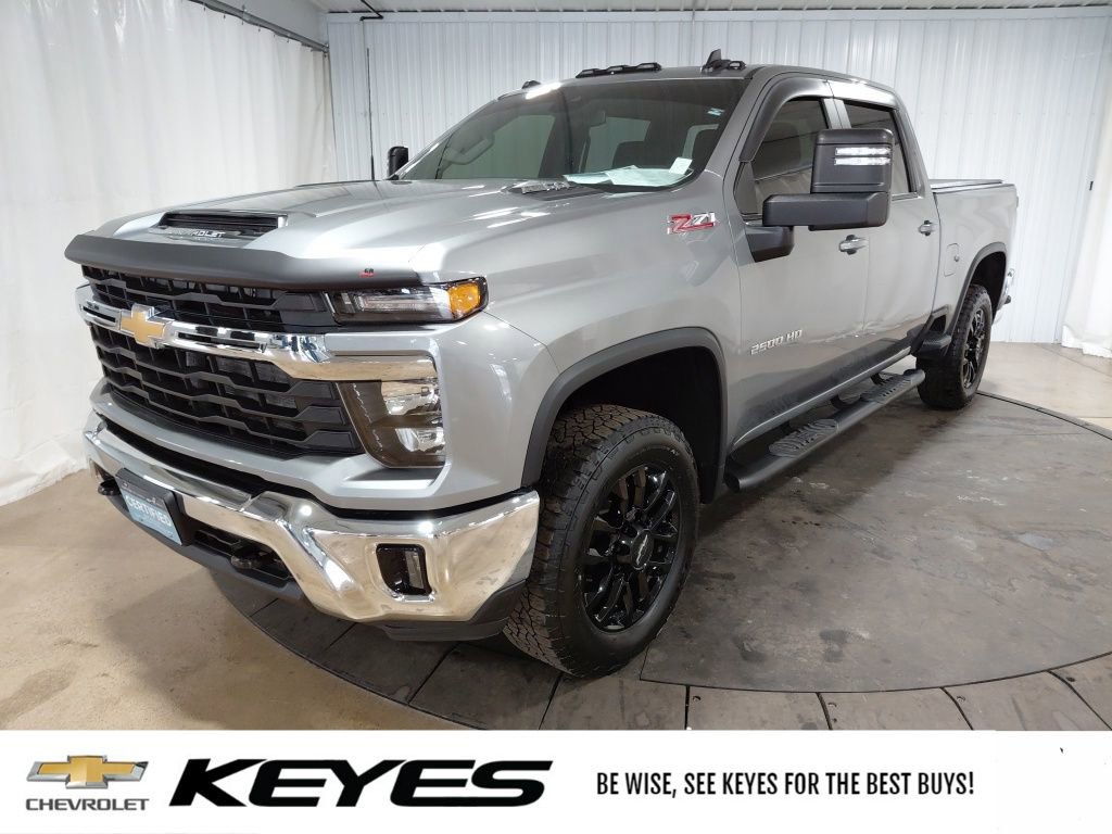 *CARFAX 1 owner*, Inspected by Certified Technicians, CarBravo Certified 12 month 12,000 mile limited bumper to bumper warranty, Fresh oil change, Fully detailed, Bought New at Keyes, Service Records Available, Clean Local Trade In, 10-Speed Automatic, 4WD, Jet Black w/Cloth Seat Trim, 10-Way Power Driver Seat Adjuster with Lumbar, 120-Volt Bed Mounted Power Outlet, 120-Volt Interior Power Outlet, 17 Machined Aluminum Wheels, 170 Amp Alternator, 2-Speed Electronic Shift Transfer Case, 3.73 Rear Axle Ratio, 4-Way Manual Driver Seat Adjuster, 6-Speaker Audio System, Alaskan Snow Plow Special Edition, Alaskan Snow Plow Special Edition Decal, Black Chevytec Spray-on Bedliner, Black Mirror Caps, Bluetooth® For Phone, Chevrolet Connected Access Capable, Color-Keyed Carpeting Floor Covering, Compass, Convenience Package, Deep-Tinted Glass, Dual-Zone Automatic Climate Control, Durabed Pickup Bed, Electric Rear-Window Defogger, Electronic Cruise Control with Set and Resume Speed, EZ Lift Power Lock and Release Tailgate, Front LED Fog Lamps, Front Rubberized Vinyl Floor Mats, Halogen Reflector Headlamps, HD Rear Vision Camera, Heat Package, Heated Driver and Front Outboard Passenger Seating, Heated Steering Wheel, Heated Vertical Trailering Mirrors, Hill Descent Control, Keyless Open and Start, LED Cargo Area Lighting, LED Smoked Amber Roof Marker Lamps, Manual Tilt and Telescoping Steering Column, Off-Road Suspension, OnStar Services Capable, Power Door Locks, Power Front Windows with Driver Express Up/Down, Power Front Windows with Passenger Express Down, Power Rear Windows with Express Down, Power steering, Power windows, Preferred Equipment Group 1LT, Premium audio system: Chevrolet Infotainment 3 Premium, Push Button Start, Rear 60/40 Folding Bench Seat (folds Up), Rear Rubberized Vinyl Floor Mats, Remote keyless entry, Remote Start Package, Remote Vehicle Starter System, Rubberized-Vinyl Floor Covering, SiriusXM with 360L Trial Subscription, Snow Plow Prep/Camper Package, Speed control, Standard Tailgate, Steering Wheel Audio Controls, Steering wheel mounted audio controls, Suspension Package, Unauthorized Entry Theft-Deterrent System, Wheels: 20 High Gloss Black Painted, Wi-Fi Hotspot Capable, Wireless Phone Projection, Wrapped Steering Wheel, Z71 Off-Road Package. Certified. Sterling Gray Metallic 2025 Chevrolet Silverado 2500HD LT 4D Crew Cab 4WD 10-Speed Automatic 6.6L V8