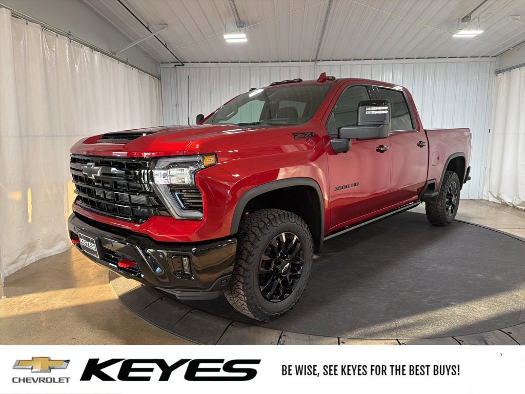 Radiant Red Tintcoat 2026 Chevrolet Silverado 3500HD LTZ 4WD 10-Speed Automatic Duramax 6.6L V8 Turbodiesel 10-Speed Automatic, 4WD, Jet Black Leather.