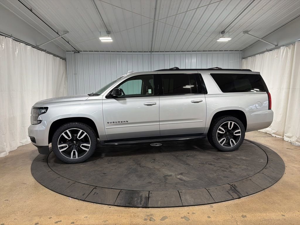 Inspected by Certified Technicians, Fresh oil change, Fully detailed, 10 Speakers, 12-Volt Auxiliary Power Outlet (5), 170 Amp Alternator, 1st & 2nd Row Color-Keyed Carpeted Floor Mats, 2-Speed Active Electronic AutoTrac Transfer Case, 3.23 Rear Axle Ratio, 3rd Row 60/40 Power Fold Split-Bench, 3rd row seats: split-bench, 4-Wheel Antilock Disc Brakes, 6-Way Power Front Passenger Seat Adjuster, ABS brakes, Adaptive suspension, All-Weather Floor Mats, All-Weather Rear Cargo Mat (LPO), AM/FM Stereo w/Navigation, Auto-Dimming Inside Rear-View Mirror, Black Assist Steps, Black Beltline Moldings, Black Mirror Caps, Black Nameplate Badging, Black Roof Rails, Body-Color Door Handles, Body-Color Headlamp Accents, Bose Centerpoint Premium 10-Speaker Surround Sound, CD player, Color-Keyed Carpeting Floor Covering, Driver Inboard & Front Passenger Airbags, Electronic Cruise Control w/Set & Resume Speed, Enhanced Driver Alert Package, Enhanced Driver Information Center, Floor Console w/Storage Area, Fog Lamps, Forward Collision Alert, Front & Rear Black Bow Ties, Front & Rear Park Assist, Front Bucket Seats, Front Center Armrest, Front dual zone A/C, Front fog lights, Hands-Free Power Liftgate, HD Radio, Head-Up Display, Headphones, Heated & Ventilated Driver & Front Passenger Seats, Heated & Ventilated Front Reclining Bucket Seats, Heated 2nd Row Outboard Seats, Heated front seats, Heated Leather Wrapped Steering Wheel, Heated rear seats, Heated steering wheel, Integrated Trailer Brake Controller, IntelliBeam w/Automatic High Beam On/Off, Interior Protection Package (LPO), Lane Change Alert w/Side Blind Zone Alert, Lane Keep Assist w/Lane Departure Warning, License Plate Front Mounting Package, Low Speed Forward Automatic Braking, Magnetic Ride Control Suspension Package, Memory seat, Memory Settings, Navigation System, Passive Entry System, Pedal memory, Perforated Leather-Appointed Seat Trim, Performance Front Brake Kit (LPO), Power driver seat, Power Folding & Adjustable Heated Outside Mirrors, Power Liftgate, Power Release 2nd Row Bucket Seats, Power steering, Power Tilt & Telescoping Steering Column, Power windows, Power-Adjustable Accelerator & Brake Pedals, Preferred Equipment Group 1LZ, Push Button Keyless Start, Rain sensing wipers, Rear air conditioning, Rear Cross Traffic Alert, Rear window defroster, Remote keyless entry, Remote Vehicle Start, Roof-Mounted Luggage Rack Side Rails, RST 6.2L Performance Edition, RST Edition, Safety Alert Seat, Single-Slot CD/MP3 Player, SiriusXM NavTraffic, SiriusXM Radio, Speed control, Steering wheel memory, Steering wheel mounted audio controls, Unique Gloss Black Sport Grille, Unique RST Emblem, Universal Home Remote, Wheel Locks (Set of 4) (LPO), Wheels: 22 x 9 Gloss Black Aluminum, Wireless Charging. Silver Ice Metallic 2019 Chevrolet Suburban Premier 4D Sport Utility 4WD 10-Speed Automatic with Overdrive EcoTec3 6.2L V8