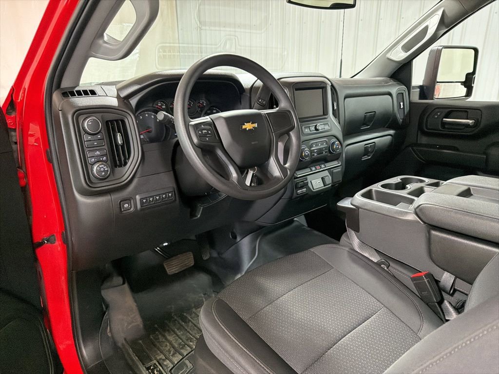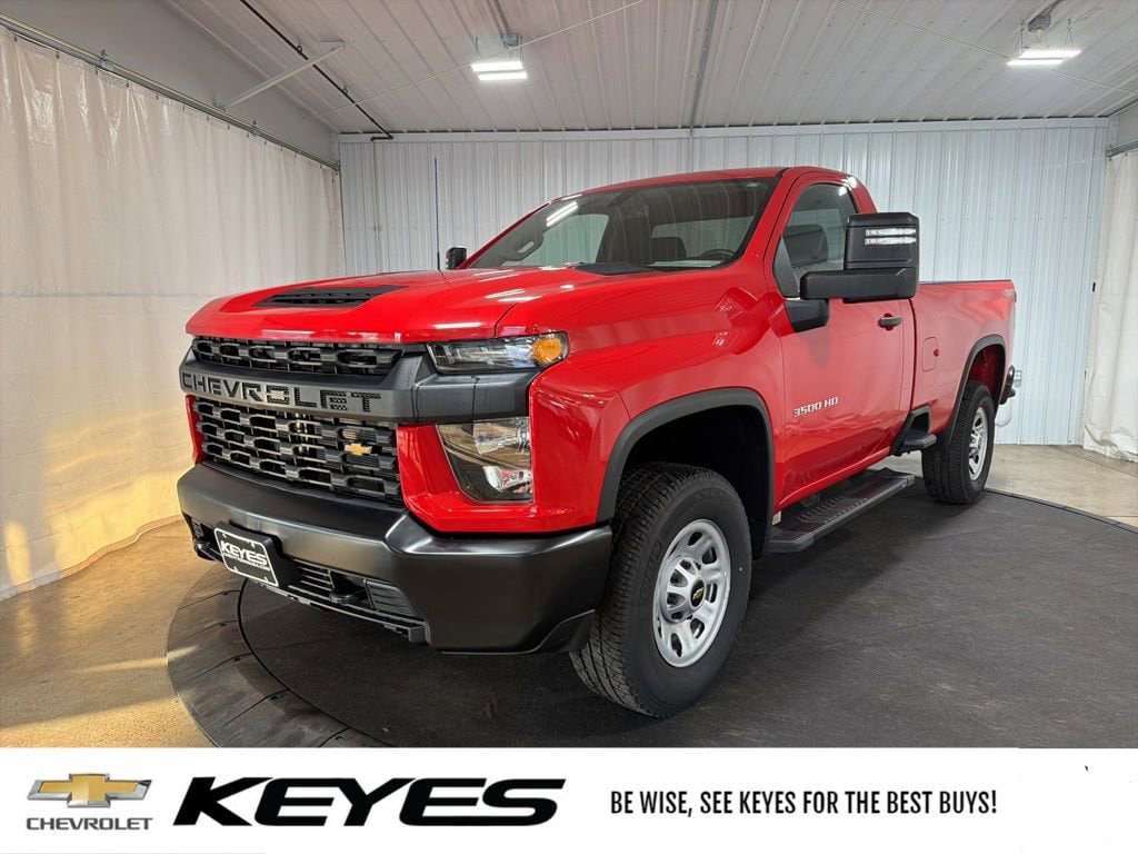*CARFAX 1 owner*, Inspected by Certified Technicians, Fresh oil change, Fully detailed, 6-Speed Automatic, 4WD, Jet Black w/Cloth Seat Trim, 170 Amp Alternator, 2-Speaker Audio System Feature, 2-Speed Electronic Shift Transfer Case, 220 Amp Alternator, 3.5 Diagonal Monochromatic Display DIC, AM/FM radio, Black Front Bumper, Black Mirror Caps, Black Rear Bumper, Bluetooth® For Phone, Deep-Tinted Glass, Electric Rear-Window Defogger, EZ Lift Power Lock & Release Tailgate, Front Grille Bar w/Black Mesh Inserts, High-Visibility Molded in Black Outside Mirrors, Locking Tailgate, Manual Door Locks, Manual Tailgate Function w/No EZ Lift, Manual Tilt Wheel Steering Column, Manual Windows, Outside Power-Adjustable Mirrors, Power Door Locks, Power Front Windows w/Driver Express Up/Down, Power Front Windows w/Passenger Express Down, Power steering, Preferred Equipment Group 1WT, Premium audio system: Chevrolet Infotainment 3, Radio: Chevrolet Infotainment 3 System, Remote Keyless Entry, Rubberized-Vinyl Floor Covering, Snow Plow Prep/Camper Package, Solar Absorbing Tinted Glass, Standard Tailgate, Steering Wheel Mounted Electronic Cruise Control, Suspension Package, WT Convenience Package. Red Hot 2022 Chevrolet Silverado 3500HD Work Truck 2D Standard Cab 4WD 6-Speed Automatic 6.6L V8